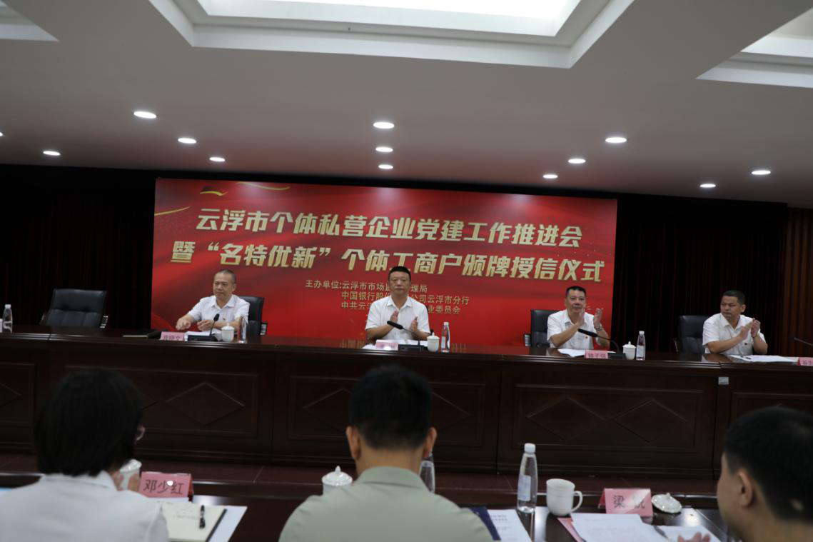 为深入推进全市个体私营企业党建工作,7月4日,我市举办了全市个体私营企业党建工作推进会暨“名特优新”个体工商户颁牌授信仪式,市委社会工作部、市市场监管局、市个体私营企业党委、中国银行云浮市分行,以及各县(市、区)市场监督管理局、个体私营企业党委等单位相关负责人,以及获得“名特优新”个体工商户代表们参加了仪式。