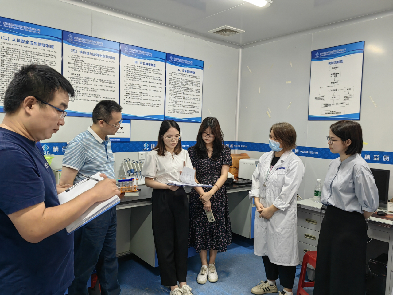 省食品检验所评价组对云城区、云安区、新兴县、郁南县等四个县(区)参加快检的农贸市场进行随机食用农产品现场抽样,随后对各县(区)省级专项资金使用和委托购买快检服务机构情况、快检试剂采购验收及贮存情况、快检任务量的完成情况、检测项目开展、抽样和检测结果原始记录、结果上报及公示和快检不合格样品的处理等情况、快检人员资质等进行细致检查与核对,快检人员现场开展盲样快检实验,进一步检验快检业务能力。