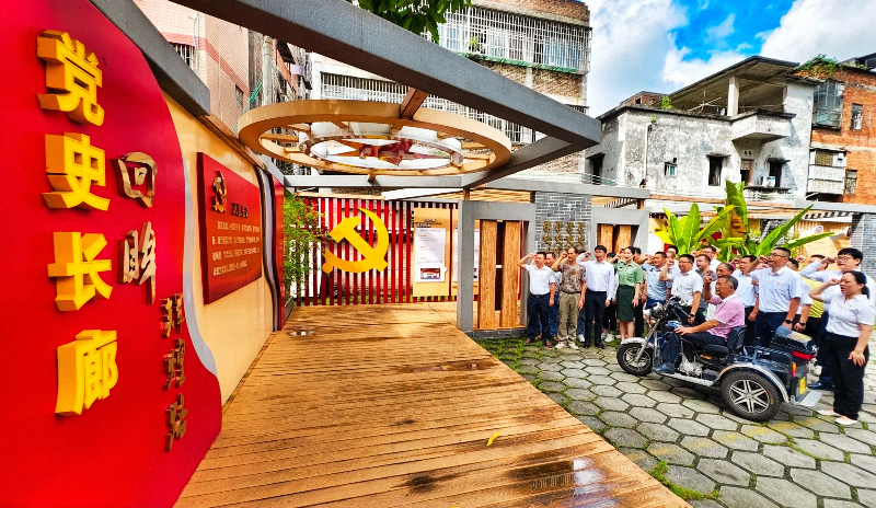 在邓发故居前的党史长廊,全体人员庄严肃立,高举右拳,齐声重温入党誓词:“我志愿加入中国共产党,拥护党的纲领……”,在铿锵有力的誓言中进一步牢记初心使命、坚定理想信念,增强奋进新征程的思想自觉和行动自觉。