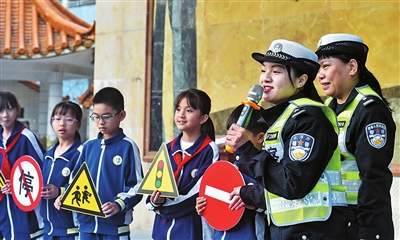 “我们通过小手牵大手的形式,以学校学生为切入点,辐射社会、家庭,通过学生向家长宣导交通安全常识,让他们戴好头盔,日常过马路、过人行道、过红绿灯遵守交通常识。”市公安交管支队市区大队二中队指导员苏警官说。市第一小学德育主任陈杰虹表示,今后学校将长期与交管部门建立“警校共建”的长效机制,主要从三个方面常态化推进。“课程化”融入:邀请交警担任“校外辅导员”,定期走进课堂,用生动的案例和专业的知识,将交通法规融入德育和生命教育课程中。“场景化”体验:联合交管部门在校内外开展实践演练,如模拟交通路口、学习指挥手势、校门口“小小交警”执勤体验等,让孩子们在真实场景中学会“知危险、会避险”。“家校化”联动:通过“小手拉大手”活动,让孩子将学到的安全知识带回家,与家人分享。同时,与交管部门合作,在上学、放学高峰期共同维护校门口交通秩序,整治违规乱象,营造安全、有序的校园周边环境。
