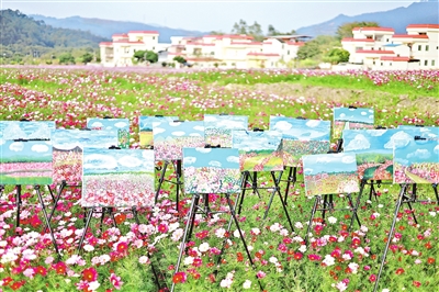 以花为媒,好风景变好“钱”景,随着“花海”的发展,前锋镇长江村周边一带的村容村貌焕然一新,打造了停车场、休闲长廊、硬底化村道等,村庄颜值大幅提升,每逢周末和节假日,景点外的农家乐、土特产销售也红红火火,村民尝到了“花海经济”的甜头。“在周末或者节假日,来这里游玩的人多了,我们自家的番薯等土特产销售得不错,也为家庭增加了一份收入。”村民梅姨开心地说。