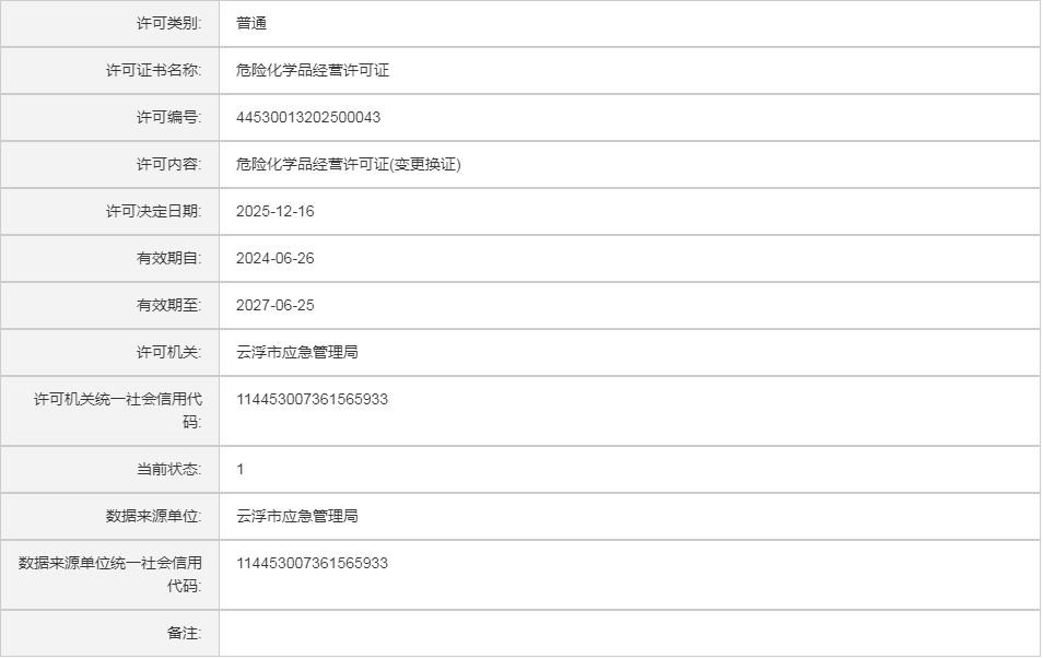 云应急(危化)许证决字〔2026〕2号云浮市鑫隆汇环保新材料有限公司危险化学品安全生产许可证(延期换证)